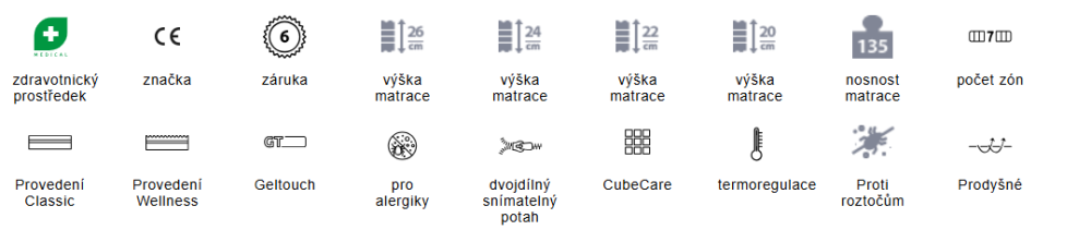 - CubeCare profilace - komfortní profilace je na studené pěně, tzn. na pevnější straně matrace. Speciální kostky jsou vyvinuté pro zdravotní matrace = CubeCare rozloží tlak, takže nedochází k přeležení.