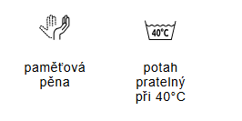 Potah (35% přírodních vláken a 65% polyesteru) je pratelný (40 °C), poddajný a odolný. Rozměry cca 54x40x11 cm.